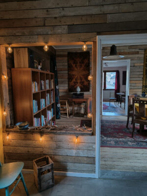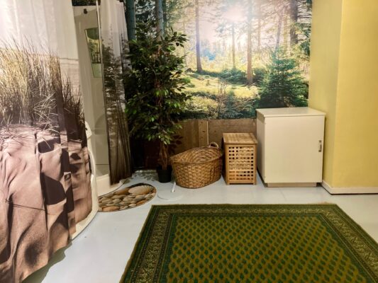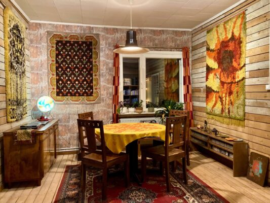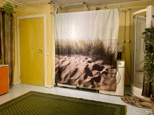 Downstairs there is a 45m² hall where your group can gather freely. The space has 2 sofas, 4 armchairs, dining table and several chairs.