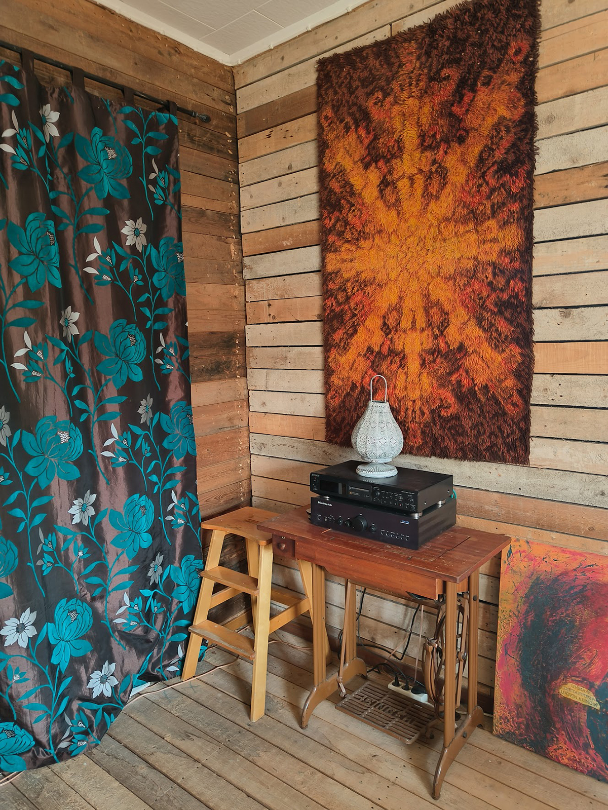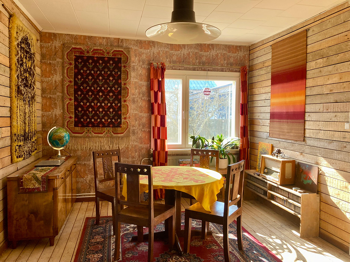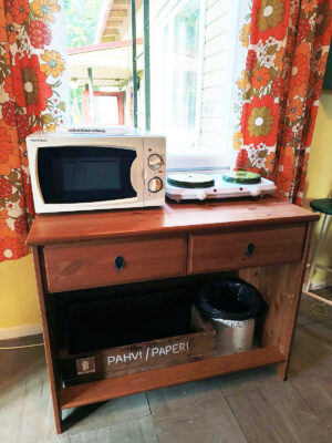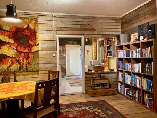 Downstairs there is also a dining room for 4 people and a fully equipped kitchen. The dining room also has a library, various games and audio equipment (MiniDisc).